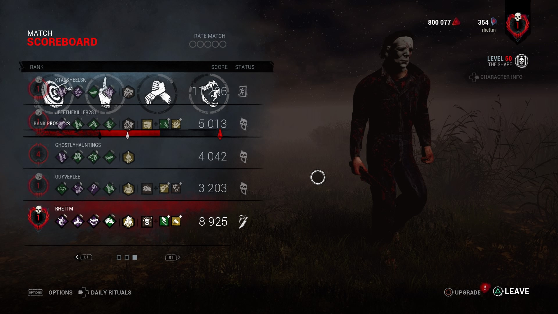 I don't think so .Some time i wonder how this surv got rank one if he play like noob.Way to easy fir surv and as killer you rank up if you want this or not.And on end what is the point rank up? None just foe some number that is all.michaelmyers87 said:i