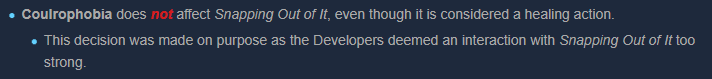 Coulro is already really good on Doc for anti-heals, it'd be broken if it worked on snap out of it because it would just take forever. You'd never lose madness, especially because if he runs Coulro he is running Distressing and probably calm add-ons.
