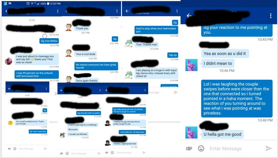 i have a pretty clear view of how you play the game by seeing you on the chat. i bet you teabag people too, and if you get tunneled or camped on a hook, you will definitly let the killer know in the chat afterwards.